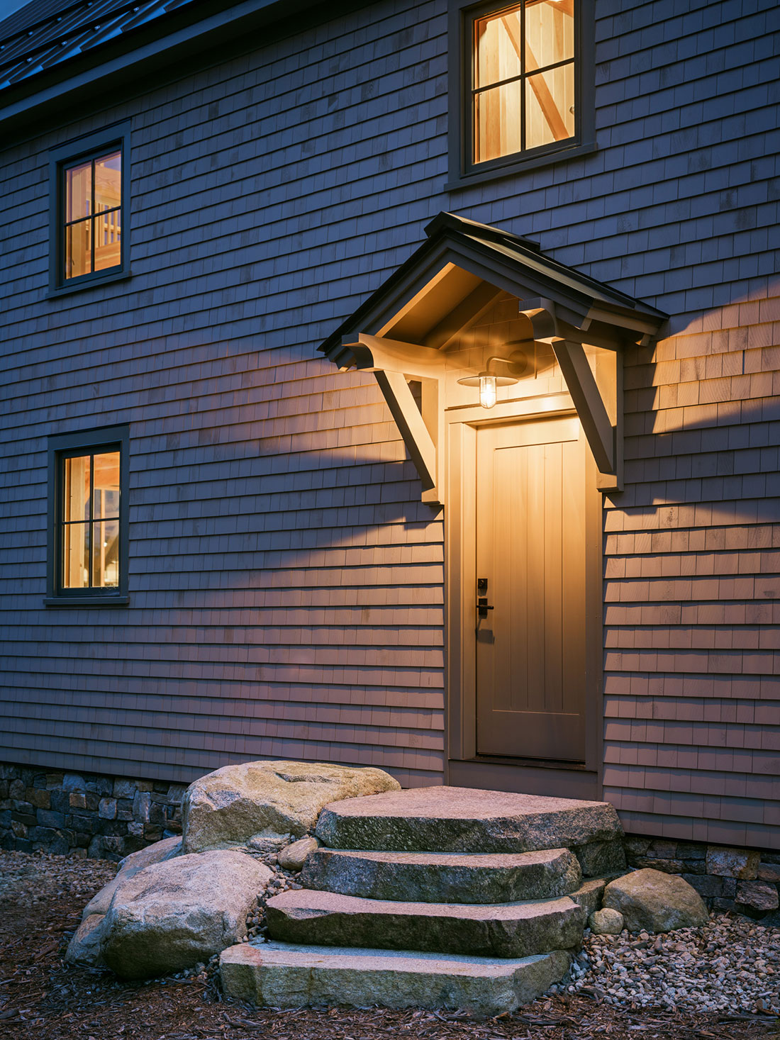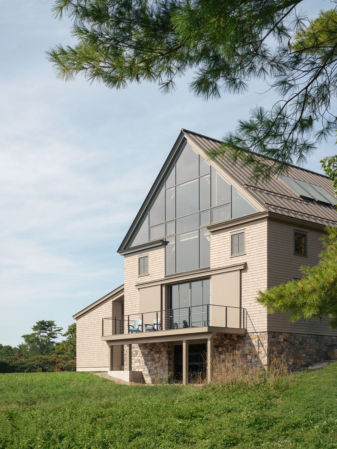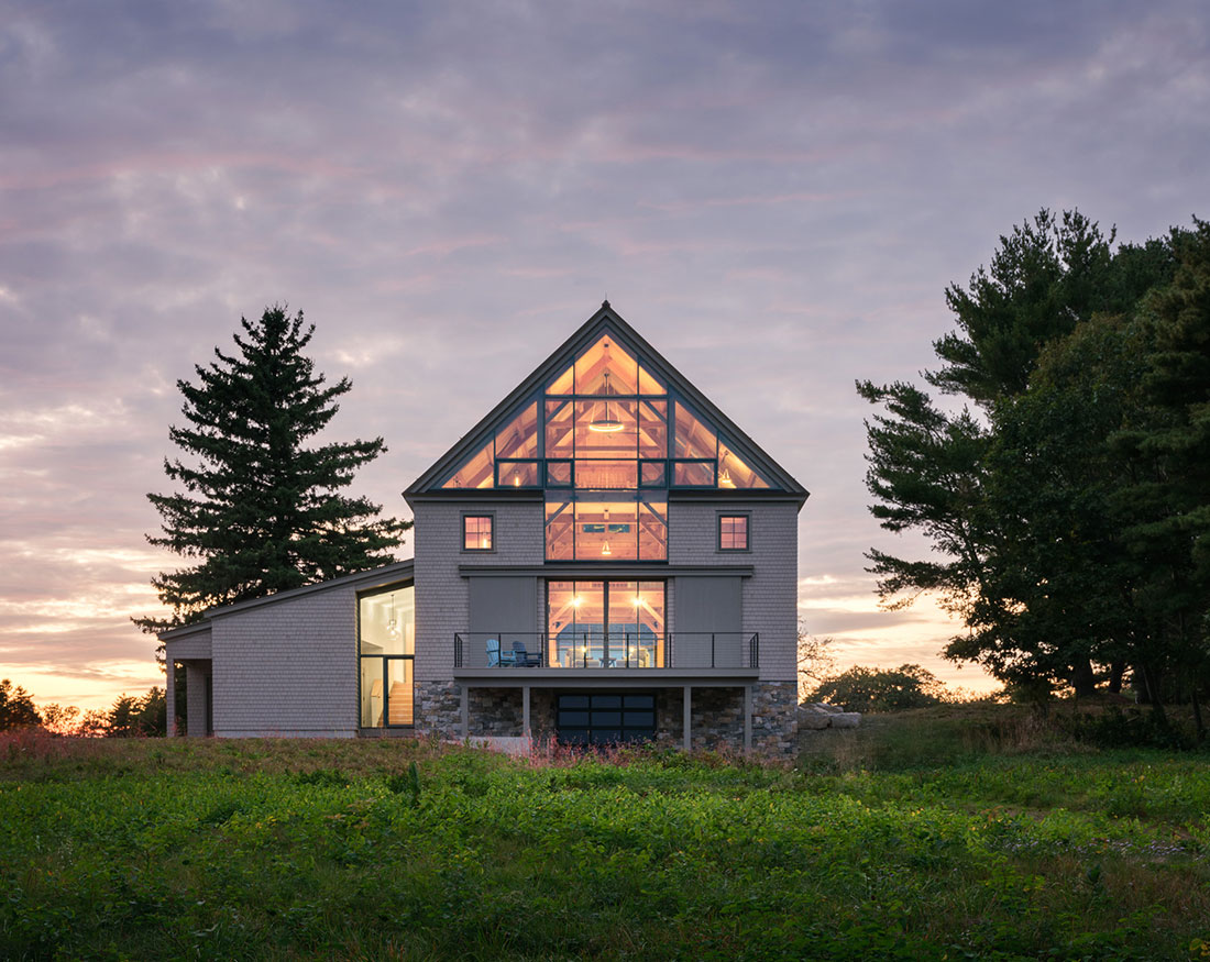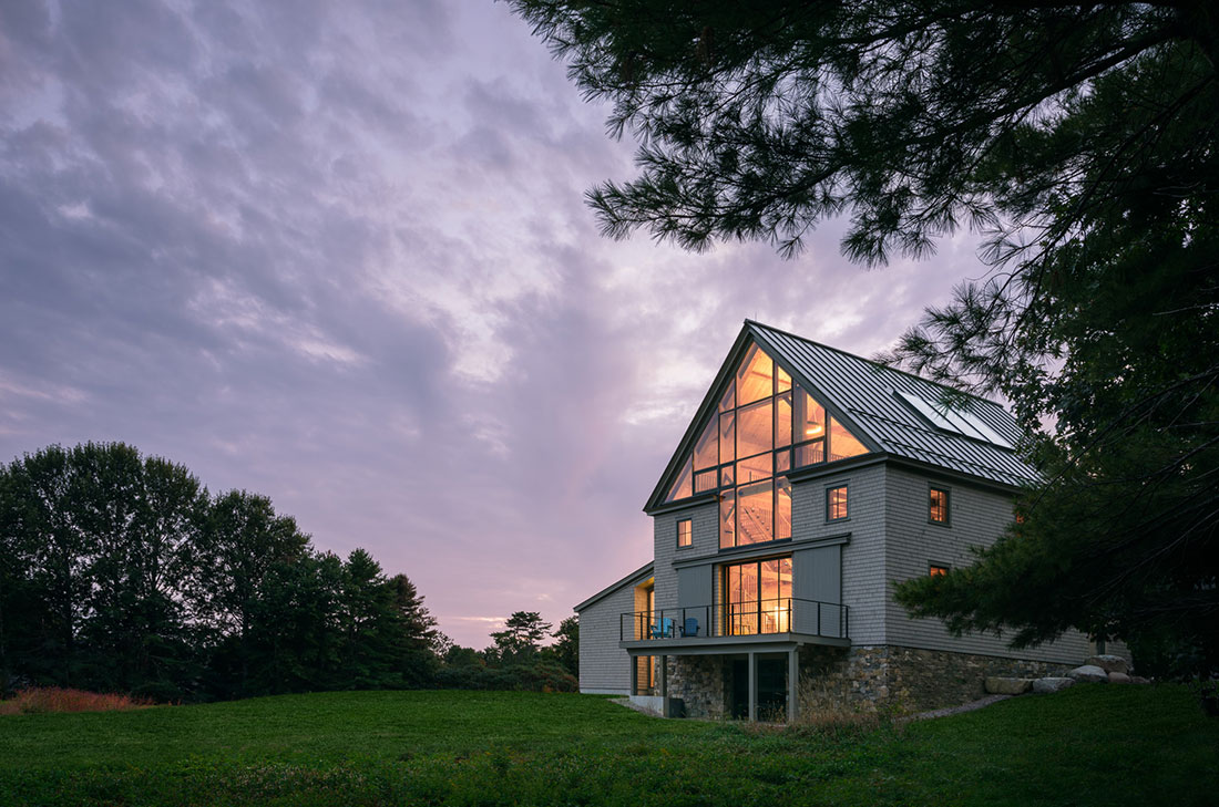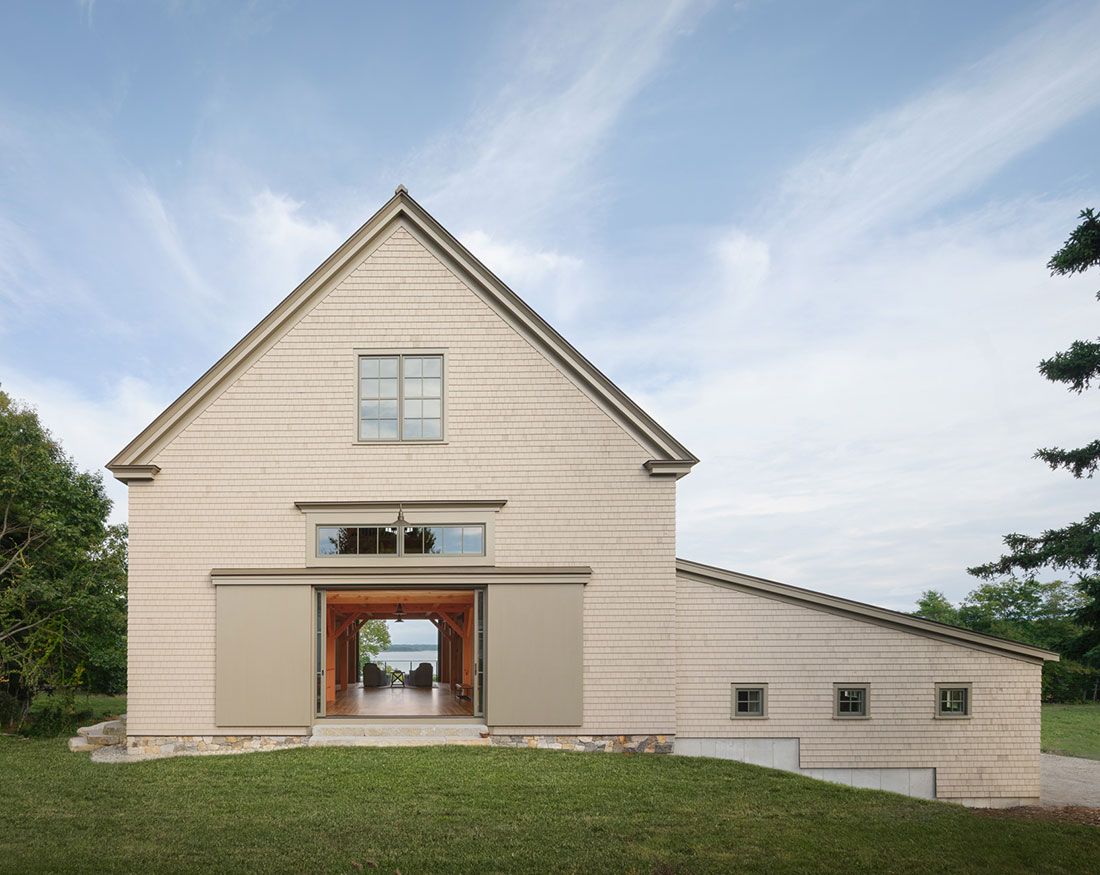 Set atop a hill overlooking Maquoit Bay, the dual nature of this barn has its roots in the past and its view towards the future. The barn presents a traditional face to the main road. An appearance that would not be out of place when these fields were worked 200 years earlier. However, when viewed from the fields or the water, the barn’s dual nature becomes clear as cedar shingles are traded for glass.